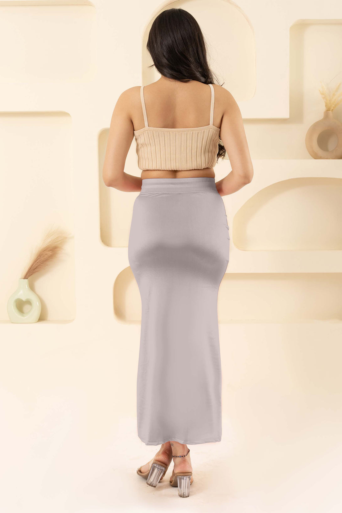 We use 93% Microfibre Satin and 7% Spandex Fabric for our Saree Shapewear and it is both Comfortable and Breathable. This fabric choice ensures a soft and smooth feel against the skin, allowing for comfortable wear throughout the day. It provides a flexible fit that moves with your body, ensuring ease of movement while wearing a saree