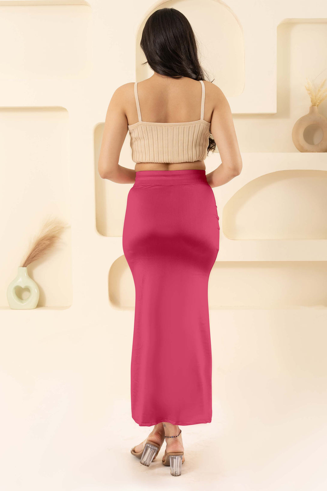 Peach - Stretchy Satin Saree Shapewear