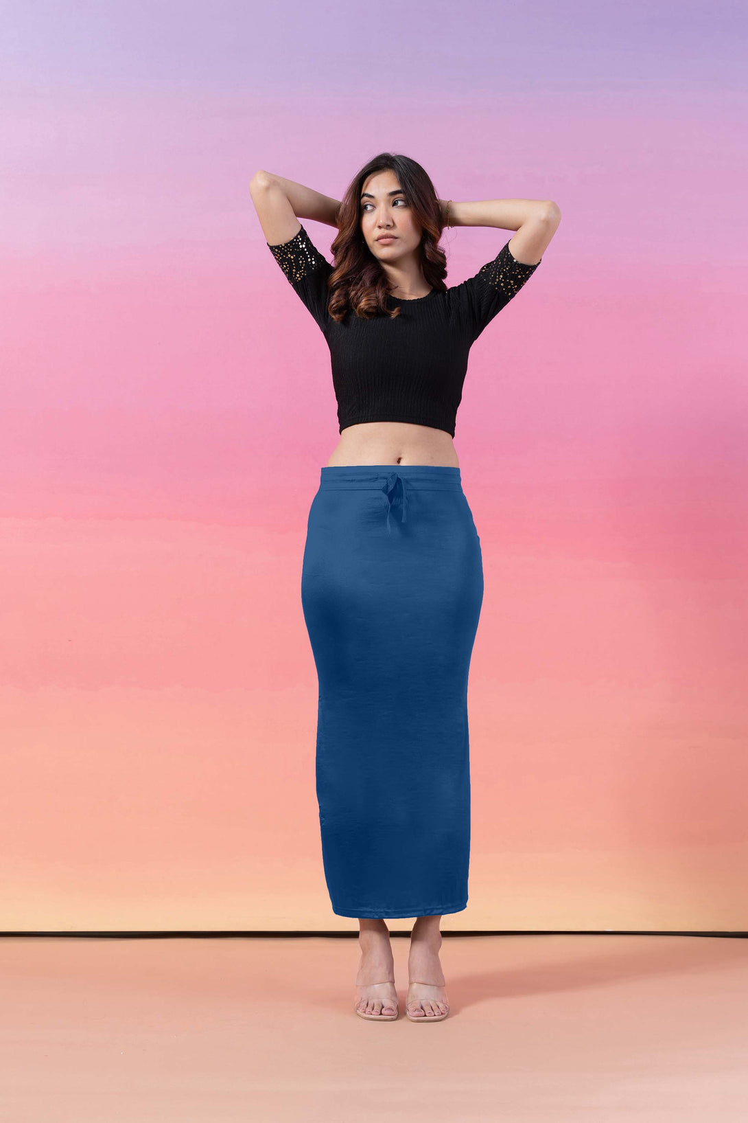 Peacock Blue - Stretchy Satin Saree Shapewear